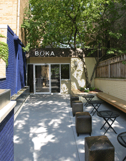 Restaurant Address: 1729 North Halsted Avenue, Chicago Boka is a very successful fine dining restaurant in the heart of the Lincoln Park neighborhood. It was designed by Warren Ashworth while still with Bogdanow Partners Architects. It features stretch fabric sculptures, end grain wood block floors, sumptuous fabrics in a variety of seating areas including dining outside and dining under a canopy. Boka features one of the first cell phone booths in the country and was featured in a Wall Street Journal article on the subject. The same newspaper also rated it as one of the country's ten best places to spend valentines day in 2007. Rated among the city's 10 best new restaurants by Chicago Magazine and CitySearch.com. |