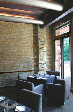 Restaurant Address: 1729 North Halsted Avenue, Chicago Boka is a very successful fine dining restaurant in the heart of the Lincoln Park neighborhood. It was designed by Warren Ashworth while still with Bogdanow Partners Architects. It features stretch fabric sculptures, end grain wood block floors, sumptuous fabrics in a variety of seating areas including dining outside and dining under a canopy. Boka features one of the first cell phone booths in the country and was featured in a Wall Street Journal article on the subject. The same newspaper also rated it as one of the country's ten best places to spend valentines day in 2007. Rated among the city's 10 best new restaurants by Chicago Magazine and CitySearch.com. |