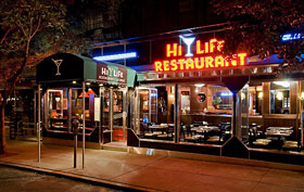 The Bar and Lounge area are intended to attract a strong bar crowd independent of the restaurant. This location re-instates the brand on the Upper East Side of Manhattan where a very successful Hi-Life ran for years before its host building was demolished. In fact, the bar, back bar, signage and other elements were salvaged from there, stored, and re-installed here. Thus there were distinct jigsaw puzzle aspects to the project.