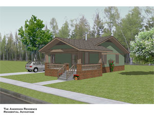 This house is one of a series of houses being designed and built for low income housing in Jackson. Four of these houses have been completed to date and are fully occupied. The idea with this, and a series of houses like it, is that it fit within the context of a 1920s Arts and Crafts housing stock remaining in the area, that it have great curb appeal, and that it be very economical to build. The main design feature is it is constructed of Structural Insulated Panel Systems or SIPs. This revolutionary building system creates an exoskeleton for a building rather than an interior skeleton like 2 x 4s. The factory cut 8’x24’ panels are delivered to the site with windows and door openings already prepared and the envelope of the house can be erected in a matter of days. It has much higher insulation value than typical stick construction, excellent long term environmental qualities and no wood framing system has better wind resistance characteristics.
